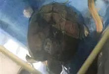 黑颈乌龟是龟鳖目淡水龟科乌龟属爬行动物;别名广东乌龟、广东草龟、黑点龟、黑颈水龟。黑颈乌龟体形较大,头较大,吻钝,略突出于上喙。头顶部黑色,侧面有黄绿色条纹;背甲黑色或棕褐色;中央有一条明显的脊棱,…全部>>