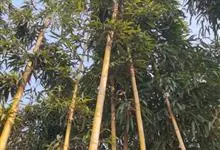 版纳甜龙竹是禾本科,牡竹属乔木状竹类植物。地下茎合轴型。竿高可达18米,梢端长而下垂,基部数节环生一圈气根;箨鞘早落性,革质,箨耳缺;箨舌先端具波状;箨片直立,叶鞘被贴生的淡黄色小刺毛;无叶耳;叶片…全部>>