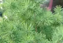蓬莱松是天门冬科、天门冬属多年生丛生草本植物。宿存,圆柱形肉质根,纵截面为绿色和表面灰色。植株高可达3米。茎呈圆柱形或近四边形,底部木质化,具有灰色或灰褐色。幼嫩的茎在每个节上都被紫绿色鳞片包,…全部>>