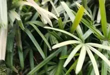 矮棕竹:丛生灌木,高1米或更高些,茎圆柱形,有节,上部被紧密的网状纤维的叶鞘,纤维毛发状,淡褐色。叶掌状深裂,裂片7-20片,线形,具1-2条肋脉,叶柄约与叶片等长,较细,两面凸起,边缘平滑。花雌雄…全部>>