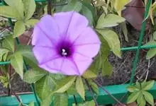 五爪金龙 Sweet),旋花科番薯属多年生缠绕草本植物。茎细长,有细棱;叶片为掌状;花冠紫红色、紫色或淡红色、偶有白色,漏斗状;蒴果近球形。花期5~12月。五爪金龙的叶子类似掌状,有5至7个裂痕,…全部>>
