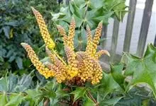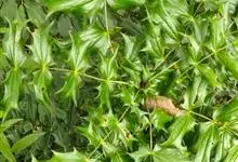十大功劳 Fedde),小檗科十大功劳属常绿灌木植物。叶子较大且较多,呈椭圆形,绿色,表面光滑无毛,叶柄较长;花朵较小,呈多边形,黄色,花瓣对称分布,表面有绒毛;果实呈圆形,褐色,…全部>>