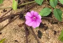 五爪金龙 Sweet),旋花科番薯属多年生缠绕草本植物。茎细长,有细棱;叶片为掌状;花冠紫红色、紫色或淡红色、偶有白色,漏斗状;蒴果近球形。花期5~12月。五爪金龙的叶子类似掌状,有5至7个裂痕,…全部>>