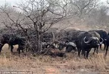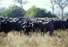 非洲野水牛:共有5个亚种。头体长2.1-3.4米,身高1-1.7米,体重300-900千克。胸膛宽阔,四肢粗壮,头大角长,雄性的角从头部向外和向下扩散,在一些雄性中,角通过覆盖头部的大盾连接。头顶的…全部>>