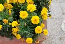 万寿菊是菊科万寿菊属一年生草本植物,别名孔雀菊、缎子花、臭菊花、西番菊、红黄草、小万寿菊、臭芙蓉、孔雀草。万寿菊茎近基部分枝。叶羽状分裂,长5-10厘米,宽4-8厘米,裂片长椭圆形或披针形,具锐齿,…全部>>