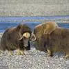 麝牛,是偶蹄目牛科麝牛属哺乳动物。麝牛体型大,但低矮粗壮,头大,吻部宽,眼小;雌雄均具角,四肢短粗,蹄宽大;毛被厚,极耐寒,尾短。雄麝牛在发情时会散发出一种类似麝香的气味,又称麝香牛。…全部>>