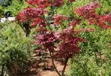 红枫,园艺种,槭树科槭属落叶小乔木,高5~8 m;树冠伞形,枝条开张,细弱。单叶对生,近圆形,薄纸质,掌状7~9深裂,裂深常为全叶片的1/2~1/3,基部心形,裂片卵状长椭圆形至披针形,先端尖,…全部>>