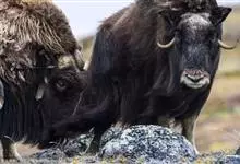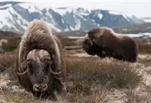 麝牛,是偶蹄目牛科麝牛属哺乳动物。麝牛体型大,但低矮粗壮,头大,吻部宽,眼小;雌雄均具角,四肢短粗,蹄宽大;毛被厚,极耐寒,尾短。雄麝牛在发情时会散发出一种类似麝香的气味,又称麝香牛。…全部>>