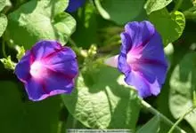 圆叶牵牛 Roth)是旋花科,番薯属一年生缠绕草本植物,叶片圆心形或宽卵状心形,基部圆,心形,顶端锐尖、骤尖或渐尖,两面疏或密被刚伏毛;花腋生,着生于花序梗顶端成伞形聚伞花序,花序梗比叶柄短或近等长,…全部>>