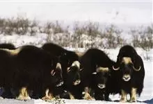 麝牛,是偶蹄目牛科麝牛属哺乳动物。麝牛体型大,但低矮粗壮,头大,吻部宽,眼小;雌雄均具角,四肢短粗,蹄宽大;毛被厚,极耐寒,尾短。雄麝牛在发情时会散发出一种类似麝香的气味,又称麝香牛。…全部>>