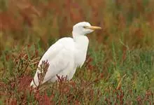 牛背鹭:体较肥胖,喙和颈较短粗。夏羽大都白色;头和颈橙黄色,前颈基部和背中央具羽枝分散成发状的橙黄色长形饰羽;前颈饰羽长达胸部,背部饰羽向后长达尾部,尾和其余体羽白色。冬羽通体全白色,个别头顶缀有黄色,…全部>>