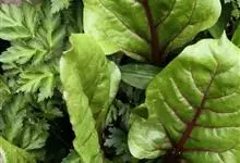 厚皮菜(莙荙菜、猪乸菜、海白菜)石竹目 > 苋科 > 甜菜属 > 厚皮菜