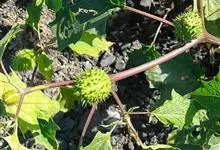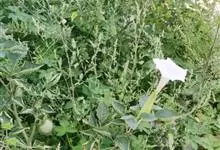 曼陀罗,茄科曼陀罗属一年生大型草本植物,全株光滑。有臭气;叶呈广卯形,边缘具不规则波状浅齿裂;花单生于枝杖间或叶腋,直立,有短梗;花萼是筒状裂片三角形,颜色为白色或淡紫色;果实为蒴果卵状,…全部>>