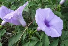 五爪金龙 Sweet),旋花科番薯属多年生缠绕草本植物。茎细长,有细棱;叶片为掌状;花冠紫红色、紫色或淡红色、偶有白色,漏斗状;蒴果近球形。花期5~12月。五爪金龙的叶子类似掌状,有5至7个裂痕,…全部>>