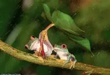 树蛙是树蛙科两栖动物的统称。树蛙体中等或大,一般雄蛙吻端斜尖,雌蛙吻端高钝;舌后端缺刻深,梨骨齿发达,鼓膜明显,指间有蹼或蹼发达,趾间近全满蹼,外侧跖较发达;鼻骨小、蝶筛骨显露,额顶宽或宽短,…全部>>