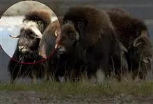 麝牛,是偶蹄目牛科麝牛属哺乳动物。麝牛体型大,但低矮粗壮,头大,吻部宽,眼小;雌雄均具角,四肢短粗,蹄宽大;毛被厚,极耐寒,尾短。雄麝牛在发情时会散发出一种类似麝香的气味,又称麝香牛。…全部>>
