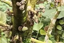 大果榕是桑科榕属的小乔木,株高可达10米;幼枝被柔毛;叶互生,宽卵状心形或近圆形;雄花无梗、匙形、花丝长,雌花生于雌株榕果内,子房白色;榕果簇生于树干基部或老茎短枝上、扁球形或陀螺形,…全部>>