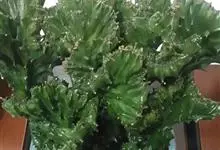 麒麟掌,是大戟科大戟属多年生植物。为金刚纂的带化变异变种。麒麟掌的株乳汁丰富;它的茎圆柱状,上部多分枝,绿色;叶互生,稀少,常生于嫩枝顶端脊上,倒卵形、倒卵状长圆形或匙形,顶端钝圆,具小凸尖,全缘,…全部>>