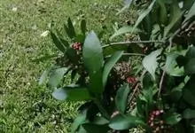 东方紫金牛是报春花科、紫金牛属植物。灌木,高达2米,通常无毛;叶厚,新鲜时略肉质,倒披针形或倒卵形,顶端钝和有时短渐尖,基部楔形,长6-12厘米,宽3-5厘米,全缘,…全部>>