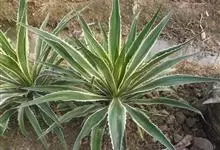 金边龙舌兰是天门冬科龙舌兰属多年生常绿草本植物。叶丛生边缘有黄白色条带镶边,有紫褐色刺状锯齿;圆锥花序黄绿色,花药丁字形着生;蒴果长椭圆形;种子扁平黑色。10年开花,结实后即枯死。…全部>>