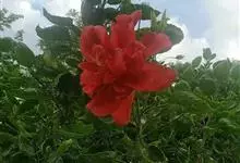 重瓣朱槿是锦葵科、木槿属常绿灌木植物;小枝疏被星状柔毛单叶互生,卵形或卵状披针形,基部圆形;叶柄长;托叶早落;花重瓣,较朱槿为大;花萼小,钟形,基部具有苞片多枚;花瓣多枚排列成彩球状,…全部>>