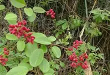 牯岭勾儿茶:鼠李科 Rhamnaceae 。攀援灌木,高3-5米;幼枝无毛。花期6-7月,果期翌年4-6月。生于海拔350-1200米山谷灌丛中或林缘及林内。全部>>