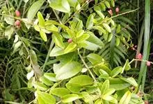牯岭勾儿茶:鼠李科 Rhamnaceae 。攀援灌木,高3-5米;幼枝无毛。花期6-7月,果期翌年4-6月。生于海拔350-1200米山谷灌丛中或林缘及林内。全部>>