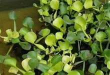 凤眼莲 Solms),是雨久花科凤眼莲属的浮水草本植物。凤眼莲茎极短,具长匍匐枝;叶基生,莲座状排列,宽卵形或宽菱形,先端钝圆或微尖,基部宽楔形或幼时浅心形;花葶具棱,穗状花序;花冠近两侧对称,…全部>>