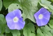 圆叶牵牛 Roth)是旋花科,番薯属一年生缠绕草本植物,叶片圆心形或宽卵状心形,基部圆,心形,顶端锐尖、骤尖或渐尖,两面疏或密被刚伏毛;花腋生,着生于花序梗顶端成伞形聚伞花序,花序梗比叶柄短或近等长,…全部>>