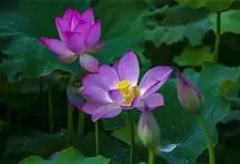 荷花:属山龙眼目、莲科,是莲属中2个物种“莲花”和“黄莲花”及众多人工培育品种的通称。是多年生水生草本花卉。地下茎长而肥厚,有长节,叶盾圆形。花期6至9月,单生于花梗顶端,花瓣多数,嵌生在花托穴内,…全部>>