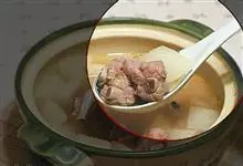 排骨汤,是用猪、牛、羊等动物剔肉后剩下的肋骨和脊椎骨制作的一道家常汤品。排骨除含蛋白、脂肪、维生素外,还含有大量磷酸钙、骨胶原、骨粘蛋白等,…全部>>
