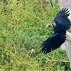 花冠皱盔犀鸟雄鸟体长约105厘米,雌鸟较小。尾白,雄雌两性的背、两翼及腹部均为黑色,但雄鸟头部奶白色,枕部具略红的丝状羽,裸出的喉囊上具明显的黑色条纹。雌鸟头颈黑,喉囊蓝色。成对或小群飞于森林上空,…全部>>