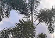 狐尾椰是棕榈科狐尾椰属的常绿乔木;木植高大通直,茎干单生,茎部光滑,有叶痕,略似酒瓶状;叶色亮绿族生茎顶,羽状全裂,小叶披针形,轮生于叶轴上,形似狐尾;穗状花序,分枝较多;雌雄同株;果卵形,…全部>>