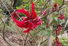 龙牙花是豆科刺桐属小乔木或灌木植物。株高可达3-5米;树干和分枝有散生皮刺;羽状复叶具3小叶,叶柄无毛,有时有下弯的刺,小叶菱状卵形,先端渐尖而钝或长渐尖,基部宽楔形,两面无毛,…全部>>