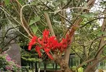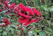 鹦哥花是豆科刺桐属植物,小乔木或乔木。树干和枝条具皮刺。羽状复叶,叶柄平滑,顶生小叶近肾形,侧生小叶斜宽心形,两面无毛。总状花序生于先端叶腋,花鲜红色,大,具花梗,苞片单生,卵形,花萼陀螺形,花冠红…全部>>