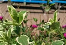 花叶蔓长春花是夹竹桃科、蔓长春花属、蔓长春花的栽培品种。蔓性半灌木,茎偃卧,花茎直立;除叶缘、叶柄、花萼及花冠喉部有毛外,其余均无毛。叶椭圆形,边缘白色,有黄白色斑点,长2-6厘米,宽1.5-4厘米,…全部>>