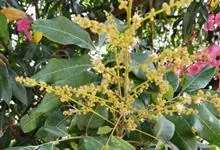 龙眼,是无患子科龙眼属下的一种大型常绿乔木,又名桂圆、圆眼、羊眼果树等。龙眼小枝粗壮,被微柔毛,散生苍白色皮孔;叶片薄革质,长圆状椭圆形至长圆状披针形;花序大型多分枝,顶生和近枝顶腋生,…全部>>