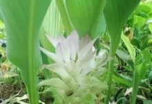 郁金是姜科、姜黄属植物。植株高约1米;根茎肉质,椭圆形或长椭圆形,内部黄色,芳香;根端紡锤状。叶基生,叶片长圆形,长30-60厘米,宽10-20厘米。花葶单独由根茎抽出,与叶同时发出或先叶而出,…全部>>