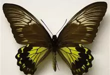 金裳凤蝶是凤蝶科、裳凤蝶属的动物。金裳凤蝶身体呈黑色,头、颈和胸侧有红毛,腹部有黑黄两色相间条纹,雄蝶前翅黑色,具黑天鹅绒光泽,各脉两侧灰白色,后翅金黄色,各室外缘有等腰三角形黑斑1枚,斑内侧有晕,…全部>>