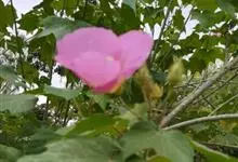 木芙蓉,锦葵科木槿属落叶灌木或小乔木。小枝上有细绒毛;叶片为卵状心形,托叶为披针形,常早落;花单生,花萼为钟形,花冠初为白色或淡红色,后逐渐变为深红色;果实为扁球形,有淡黄色的毛附着。花期8到10月。…全部>>