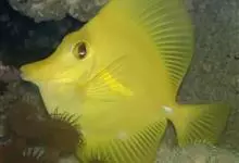 黄高鳍刺尾鱼其体卵圆而侧扁,背鳍及臀鳍硬棘尖锐,前方软条较后方延长,呈伞形;尾鳍截平。尾棘在尾柄前部,稍可活动。幼鱼及成鱼体、头部及各鳍皆一致呈鲜黄色;胸鳍有狭暗缘;尾柄棘白色。…全部>>