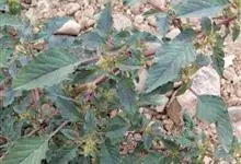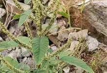 反枝苋是苋科苋属的一年生草本植物。株高达1米;茎密被柔毛;叶菱状卵形或椭圆状卵形,先端锐尖或尖凹,两面及边缘被柔毛,下面毛较密;穗状圆锥花序,顶生花穗较侧生者长;花被片长圆形或长圆状倒卵形,…全部>>