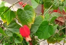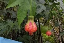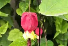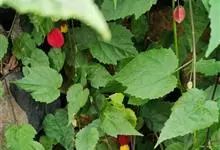 红萼苘麻是锦葵科、苘麻属常绿软木质灌木,叶绿色,长5-10厘米,心形,叶端尖,叶缘有钝锯齿,有时分裂,有细细的叶柄;叶互生,掌状叶脉;花单生于叶腋,具长梗,下垂;花萼红色,半套着大约4厘米长的花瓣,…全部>>