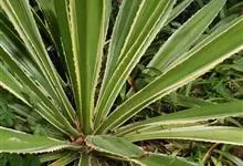 剑麻又名菠萝麻,天门冬科龙舌兰属,是一种多年生热带硬质叶纤维作物,茎粗短。叶呈莲座式排列,刚直,肉质,剑形,初被白霜,后渐脱落而呈深蓝绿色;圆锥花序粗壮,花黄绿色,有浓烈的气味;蒴果长圆形。…全部>>