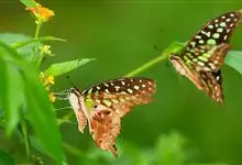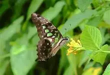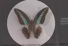 青带凤蝶Graphium sarpedon ,又名青凤蝶,是最普遍的中型凤蝶,飞行速度很快。青带凤蝶的翅膀中央有许多浅蓝色的斑点,很整齐地排列成一条直线。这些斑点由上而下逐渐变大,就像一条青色的带子。全部>>