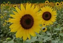 向日葵:是桔梗目、菊科、向日葵属的植物。因花序随太阳转动而得名。是一年生高大草本植物。茎粗壮,高1-3米,不分枝或有时上部分枝,被白色粗硬毛。叶互生,卵状心形或卵形,顶端急尖或渐尖,基生3出脉,…全部>>
