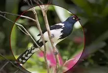 斑背燕尾是鹟科、燕尾属中型鸟类,体长24-25厘米。额至头顶前部白色,其余头、颏、喉、胸黑色,后颈有一白领,背黑色具圆形白色斑点,腰白色,两翅黑色具白色翅斑,尾呈深叉状,黑色、具白色端斑。…全部>>
