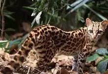 豹猫是猫科豹猫属动物。头体长360-660毫米,体重1.5-5千克。豹猫在中国也被称作“钱猫”,因为其身上的斑点很像中国的铜钱。体型和家猫相仿,但更加纤细,腿更长。南方种的毛色基调是淡褐色或浅黄色,…全部>>