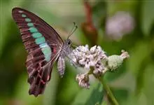 青带凤蝶Graphium sarpedon ,又名青凤蝶,是最普遍的中型凤蝶,飞行速度很快。青带凤蝶的翅膀中央有许多浅蓝色的斑点,很整齐地排列成一条直线。这些斑点由上而下逐渐变大,就像一条青色的带子。全部>>