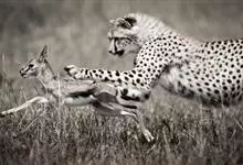 猎豹是食肉目猫科猎豹属哺乳动物,又称印度豹。胸腔深,腰细窄。粗糙的短毛为淡黄色,带黑色圆斑;腹部为白色,没有斑点,但尾巴有斑纹,到末梢共四到六圈黑色环纹。雄性比雌性大。寿命一般是6.9年。…全部>>